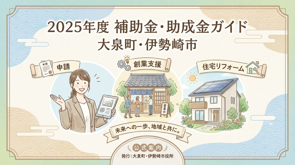 群馬県大泉町および伊勢崎市では、2025年度(令和7年度)に向けて、若者の挑戦や創業、住環境の整備を支援する多彩な補助金制度を展開しています。特に伊勢崎市の「えがお咲く若者未来共創事業」では、若者主体のプロジェクトに最大20万円が交付されます。また、大泉町では空き店舗活用や省エネ家電導入への支援が充実しており、これらを活用することで初期投資や生活コストを大幅に抑えることが可能です。