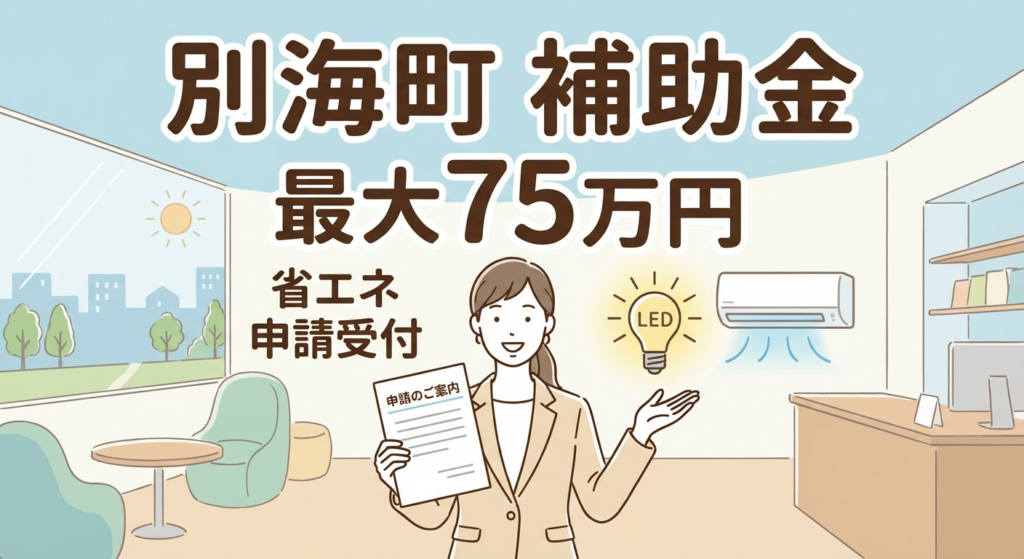 別海町の「中小企業省エネルギー化支援事業補助金」は、町内の中小企業が省エネ設備を導入する際に最大75万円(補助率1/2)を支援する制度です。照明のLED化や高効率ボイラの導入に加え、同時に実施する熱中症対策設備(エアコン等)も対象となります。