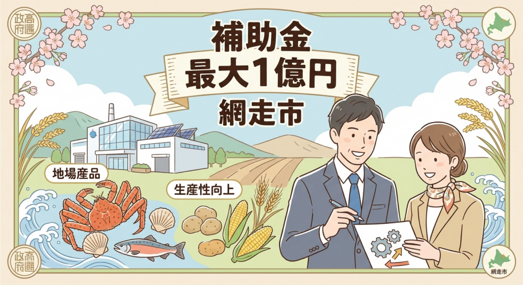 網走市では、地場産品の生産性向上と競争力強化を目的に、最大1億円の補助金を交付しています。ふるさと納税の返礼品を提供する事業者が対象であり、大規模な設備投資を検討している企業にとって極めて強力な支援策です。