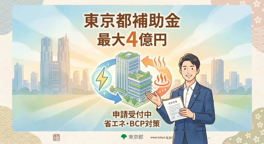 東京都が実施する「コージェネレーションシステム(CGS)導入支援事業」は、電気と熱を同時に有効活用する設備の導入に対し、最大4億円を助成する制度です。省エネ性能の向上だけでなく、災害時の非常用電源確保(BCP対策)としても極めて有効な投資となります。