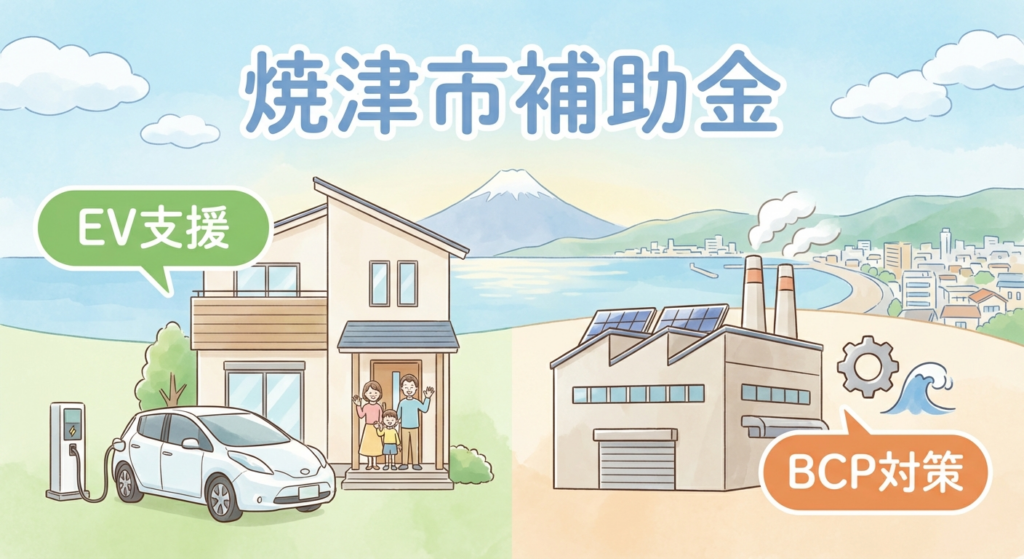静岡県焼津市では、脱炭素社会の実現と災害に強いまちづくりを推進するため、個人向けの「電気自動車(EV)購入補助金」と、事業者向けの「立地工場等事業継続強化事業費補助金」を実施しています。個人は一律5万円、事業者は最大2億円という手厚い支援が特徴です。