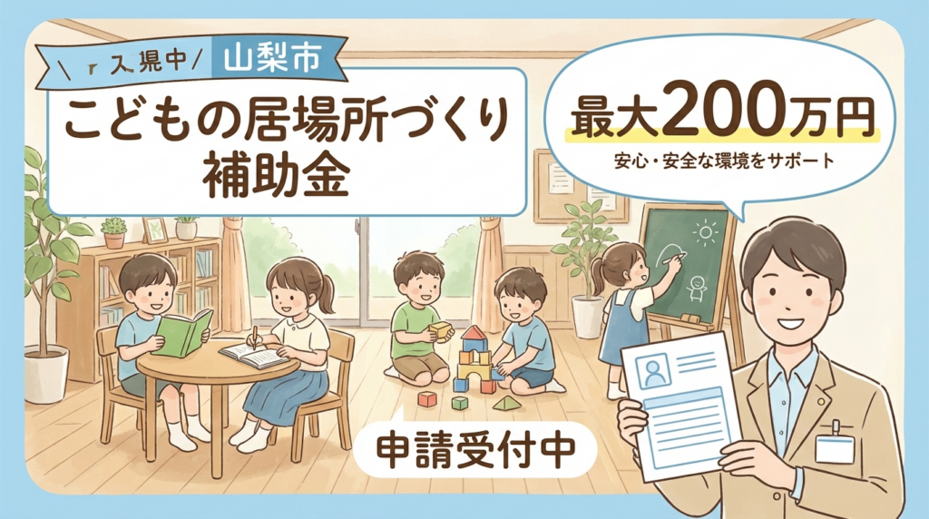 山梨市では、子どもたちが安心して過ごせる環境を整備するため、非営利団体を対象とした「こどもの居場所づくり支援団体補助金」を実施しています。本制度は、最大200万円の補助により、学習支援や生活習慣の形成を目的とした拠点づくりを強力にバックアップするものです。
