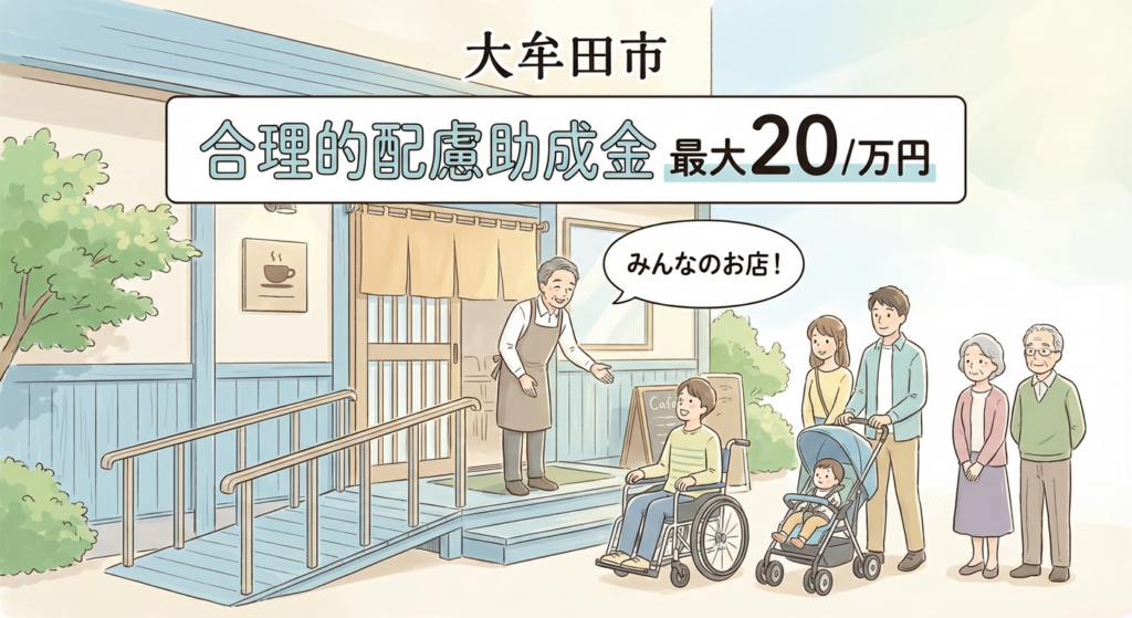 大牟田市合理的配慮提供支援助成金は、障がいのある方が店舗や施設を円滑に利用できるよう、バリアフリー改修やコミュニケーションツールの導入を行う事業者を支援する制度です。2025年度(令和7年度)も継続的な支援が期待されており、小規模事業者でも活用しやすい最大20万円(補助率2/3)の強力なサポートが特徴です。