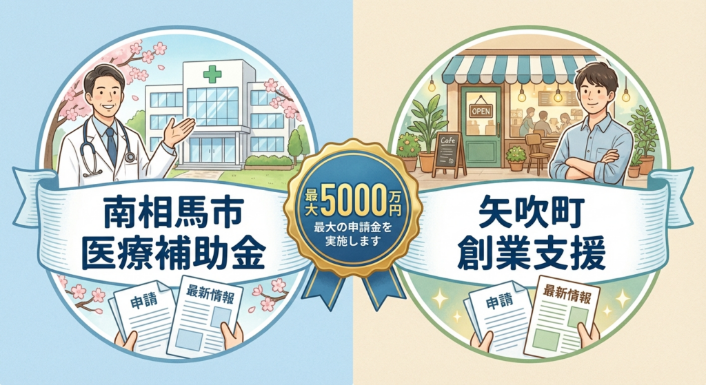 福島県南相馬市では地域医療を支える医師・医療法人向けに最大5,000万円の補助金を、矢吹町では創業者向けに登録免許税の軽減や融資優遇を実施しています。本記事では、これら2つの支援制度の最新情報と、申請で失敗しないためのポイントを詳しく解説します。