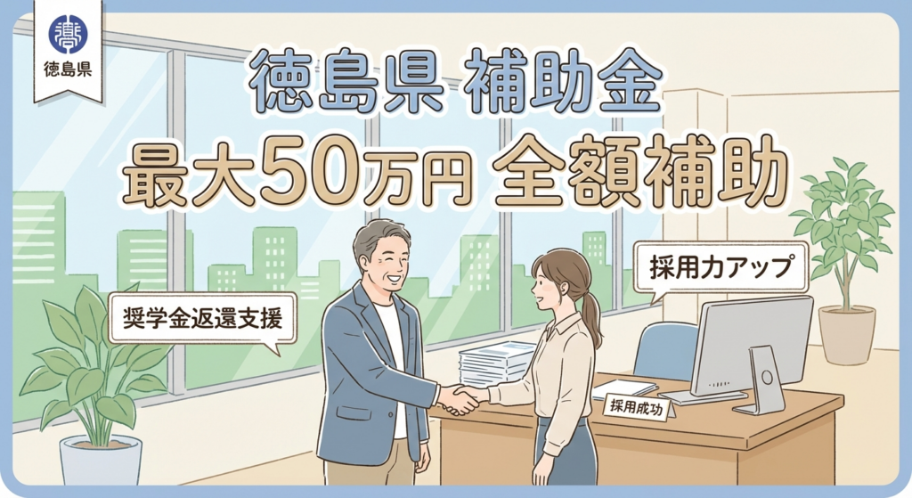 徳島県では、若手人材の確保と定着を目的として、従業員の奨学金返還を支援する制度を新たに導入する中小企業に対し、その経費を最大50万円まで補助しています。補助率は10/10(全額補助)となっており、実質的な自己負担なしで福利厚生を充実させることが可能です。