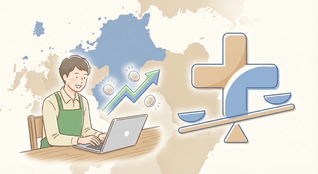福岡県は、地方都市の中でもDX(デジタルトランスフォーメーション)推進に注力しています。国の補助金だけでは自己負担が重く、導入を躊躇している小規模事業者に対し、県がさらに1/12を負担することで、実質的な投資ハードルを下げ、県内企業の競争力を底上げする狙いがあります。
