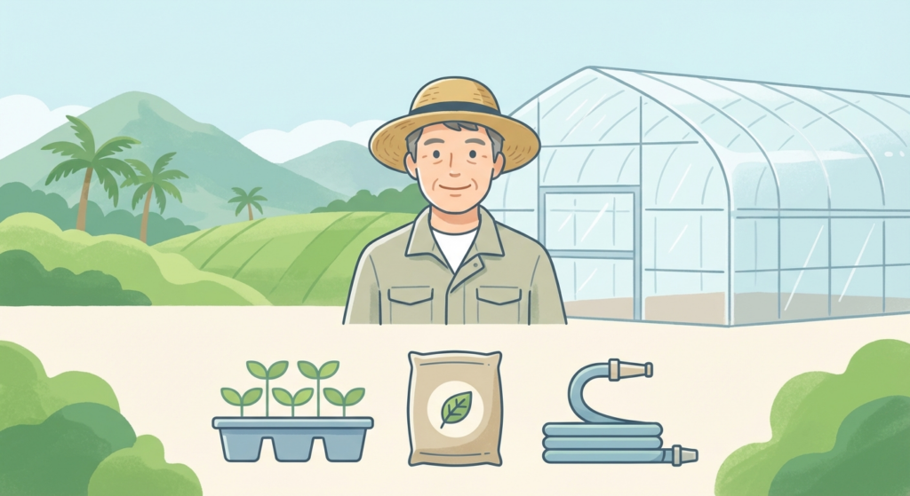 本補助金を利用するためには、南城市内で実際に農業を営んでいることが大前提となります。また、単に資材を買うだけでなく、その資材を用いて「経営を改善する意欲」が求められます。